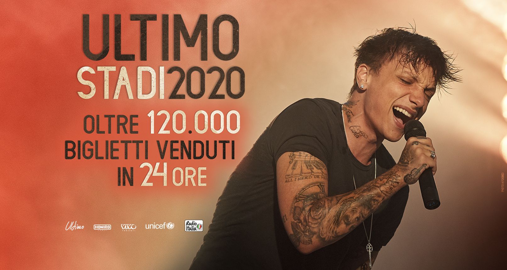 Il giovane cantautore ha rivelato le date del tour, prodotto e distribuito da Vivo Concerti, solo due giorni fa: dopo aver incantato il suo pubblico con “La Favola”, speciale data evento che lo ha visto esibirsi il 4 luglio allo Stadio Olimpico di Roma davanti a oltre 60 mila persone, a soli 23 anni Ultimo si aggiudica il titolo di più giovane artista italiano a esibirsi negli stadi.