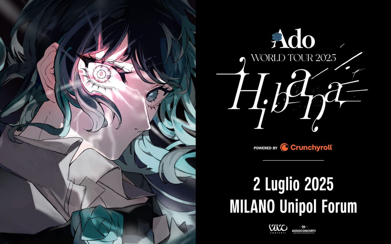 Ado - la cantante e superstar giapponese - annuncia Ado WORLD TOUR 2025 “Hibana” Powered by Crunchyroll, il suo secondo tour mondiale nelle principali arene in oltre trenta città, raggiungendo ancora più fan. Per l’occasione arriverà finalmente anche in Italia, con un unico appuntamento il 2 luglio 2025 all’Unipol Forum di Milano, che si preannuncia un evento senza precedenti.