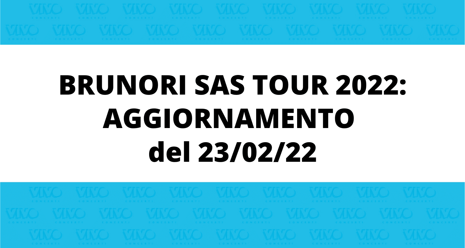 Si comunica che il tour di Brunori Sas, in programma dal 9 marzo 2022, non si potrà svolgere secondo il calendario previsto a causa delle attuali restrizioni in vigore che impediscono il pieno svolgimento degli spettacoli dal vivo in Italia.