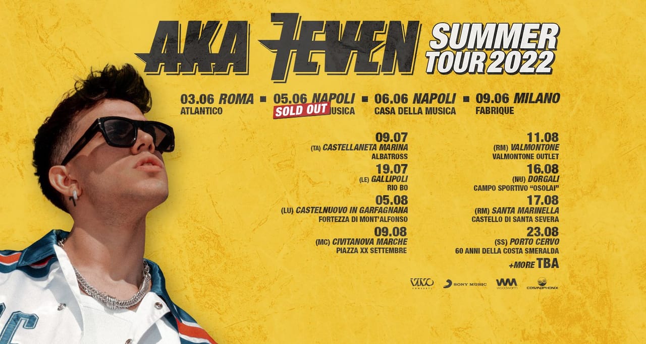 L’attesa per il tour nei club di AKA 7EVEN è sempre più breve e i suoi fan non stanno più nella pelle di vederlo nel corso di AKA 7EVEN live per quattro speciali appuntamenti indoor nei club di Roma, Napoli (2 date, di cui la 1^ sold out) e Milano.