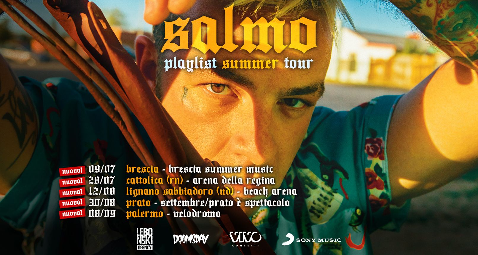 Non accenna a fermarsi SALMOche, dopo una tournée interamente sold out nei principali palazzetti italiani, chiusa con l’esplosivo live al Mediolanum Forum di Milano (30.03), aggiunge nuove date estive al suo “PLAYLIST SUMMER TOUR”.