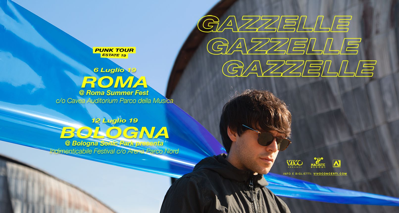 Continua il grande successo per GAZZELLE, dopo aver registrato il sold out anche per venerdì 1 marzo al Mediolanum Forum di Assago (MI), l’artista romano annuncia due date del suo nuovo “PUNK TOUR ESTATE 19”: Roma, sabato 6 luglio alRoma Summer Fest – Cavea Auditorium Parco della Musica e a Bologna, venerdì 12 luglio al Bologna Sonic Park presenta Indimenticabile Festival – Arena Parco Nord.