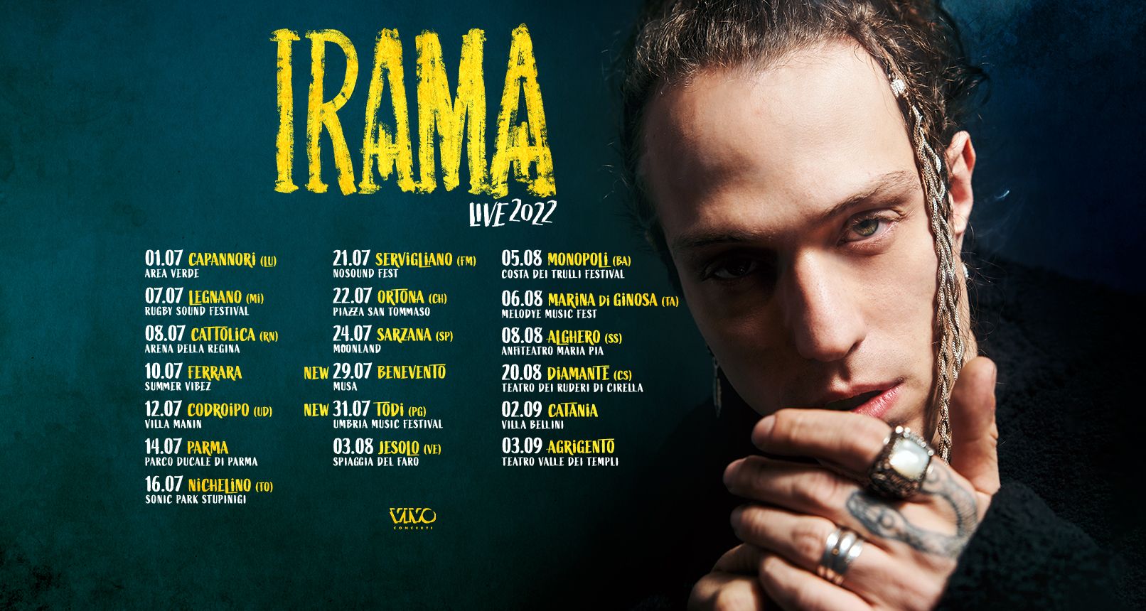 IRAMA, dopo il successo registrato nei palazzetti di tutta Italia, annuncia due nuove date estive dell’atteso Tour 2022, in partenza dal 1° luglio.