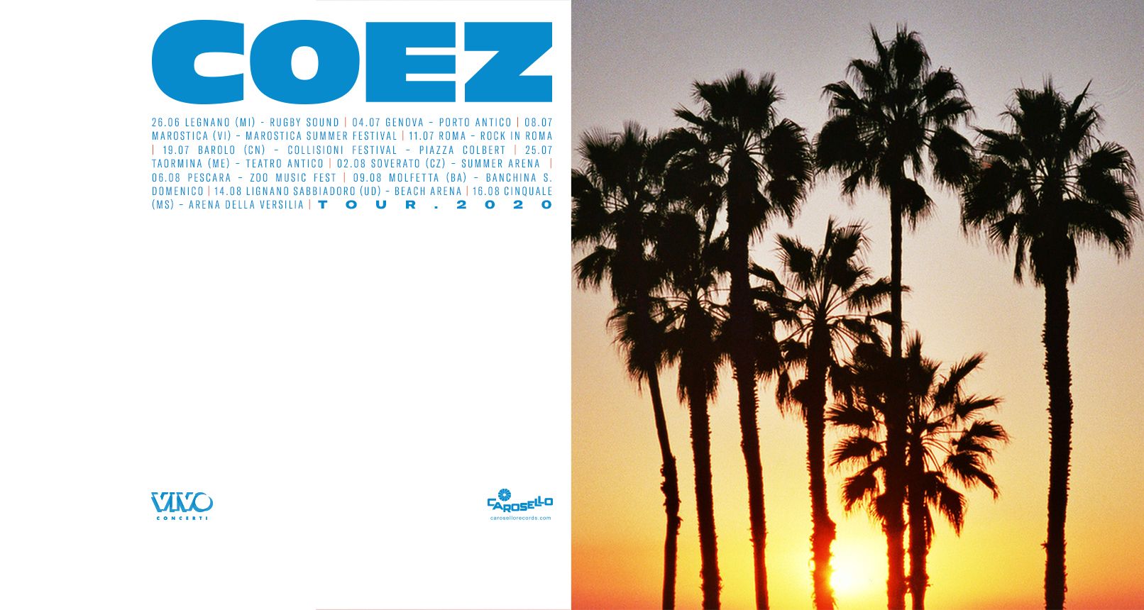 Una nuova avventura live per COEZ, che arriva dopo un tour invernale che ha fatto tappa nei più importanti palazzetti italiani, partendo dal palco-culto dell’Arena di Verona e registrando il sold out al Mediolanum Forum di Milano. Nell’estate 2020 l’artista si esibirà sui palchi dei principali festival italiani e tornerà al Rock in Roma, dove nel 2018 ha infranto il record per un artista italiano in quell’evento, con circa 33 mila biglietti venduti.