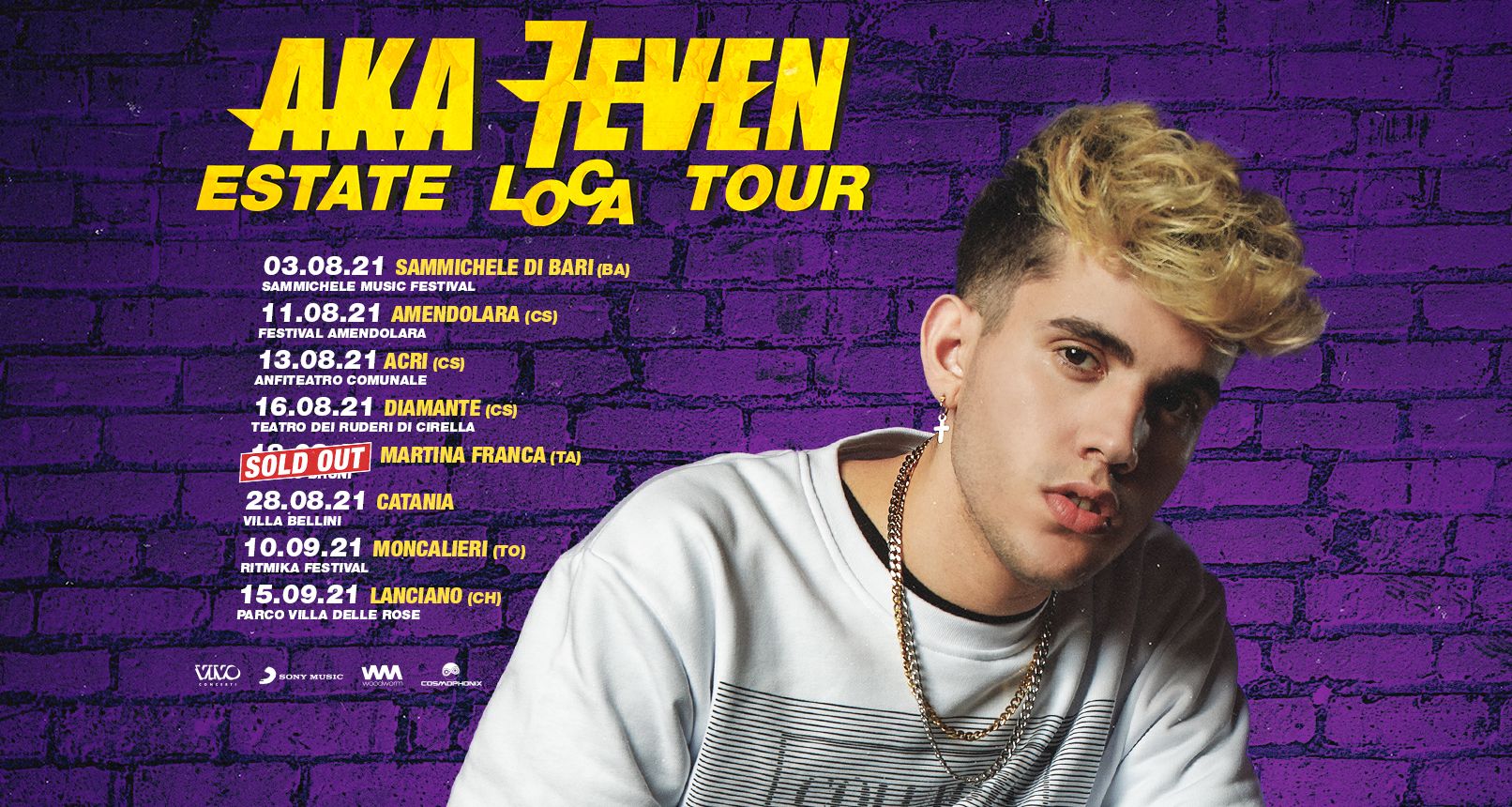 Aka 7even, nome d’arte di Luca Marzano, dopo aver ottenuto la certificazione di doppio disco di platino per il suo brano “Mi Manchi” ed essere arrivato in finale ad Amici20, annuncia le date dell'ESTATE LOCA TOUR, la tournée estiva in cui la data di Martina Franca (TA) è già sold out.