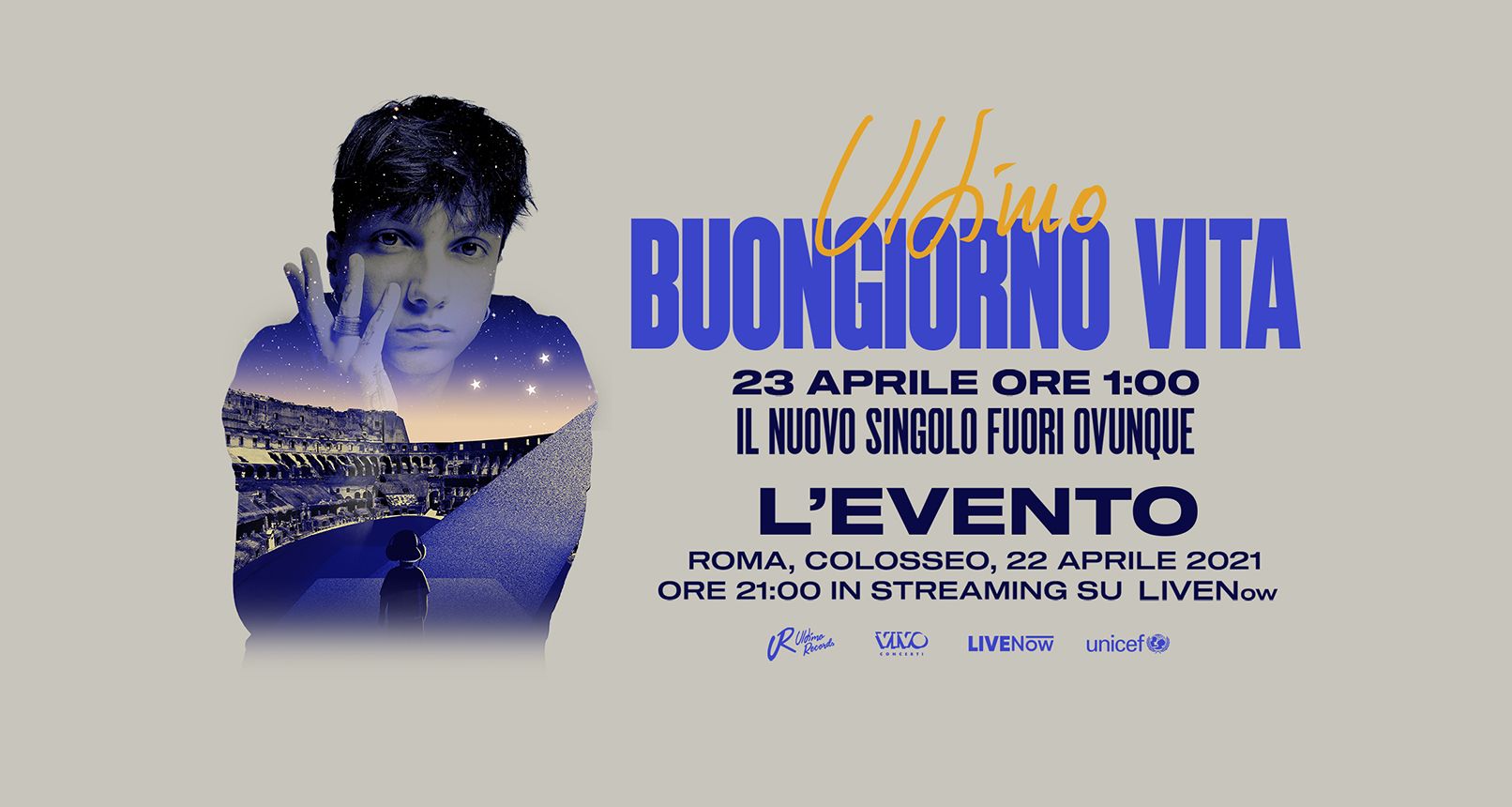 Venerdì 2 aprile 2021. Giovedì 22 aprile alle ore 21:00, Ultimo sarà il protagonista di “Buongiorno vita – L’EVENTO”. Un appuntamento unico e speciale dal Parco archeologico del Colosseo, durante il quale il cantautore romano, oltre a proporre i grandi successi che già hanno consacrato la sua giovane carriera, presenterà in anteprima assoluta il nuovo singolo “Buongiorno vita”.