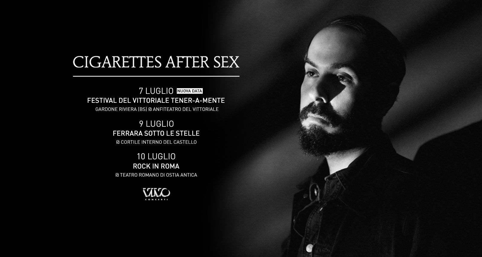 Dopo i due concerti appena annunciati dei CIGARETTES AFTER SEX, che approderanno in alcune delle location più caratteristiche del nostro paese, si aggiunge il terzo live sabato 7 luglio a Gardone Riviera (Brescia) all’Anfiteatro del Vettoriale per il festival Tener-A-Mente