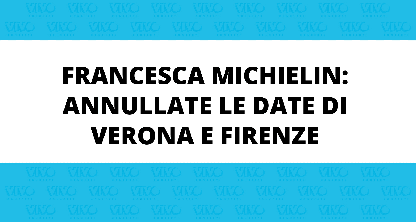 Vivo Concerti comunica che, per motivi indipendenti dalla volontà dell’artista, le date di Verona e Firenze del tour “Live – Fuori dagli spazi” di Francesca Michielin originariamente previste sabato 11 e mercoledì 15 settembre, non saranno riprogrammate.