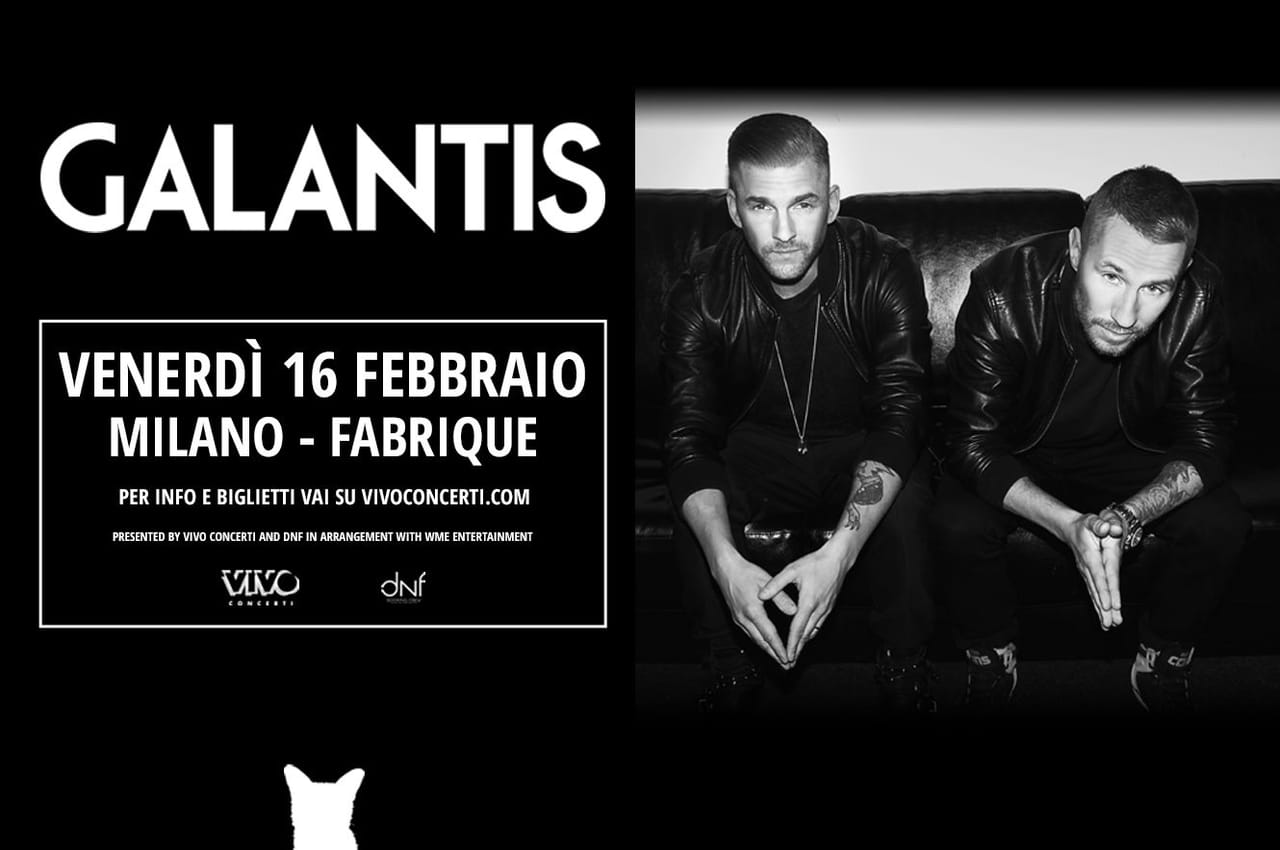 A causa di circostanze imprevedibili, lo spettacolo dei GALANTIS previsto a MILANO presso il Fabrique in data 08.09.2017 è stato posticipato al 16.02.2018, resta invariata la location. I biglietti acquistati per il 08.09.2017 rimangono validi per la data del 16.02.2018.