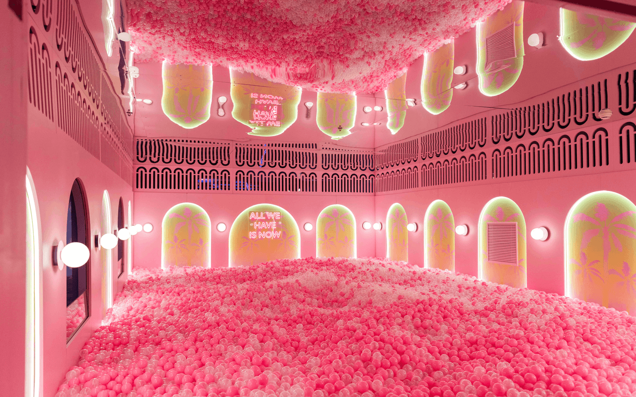 Sarà inoltre possibile immergersi nella celebre piscina piena di palline rosa,“Enjoy today”.