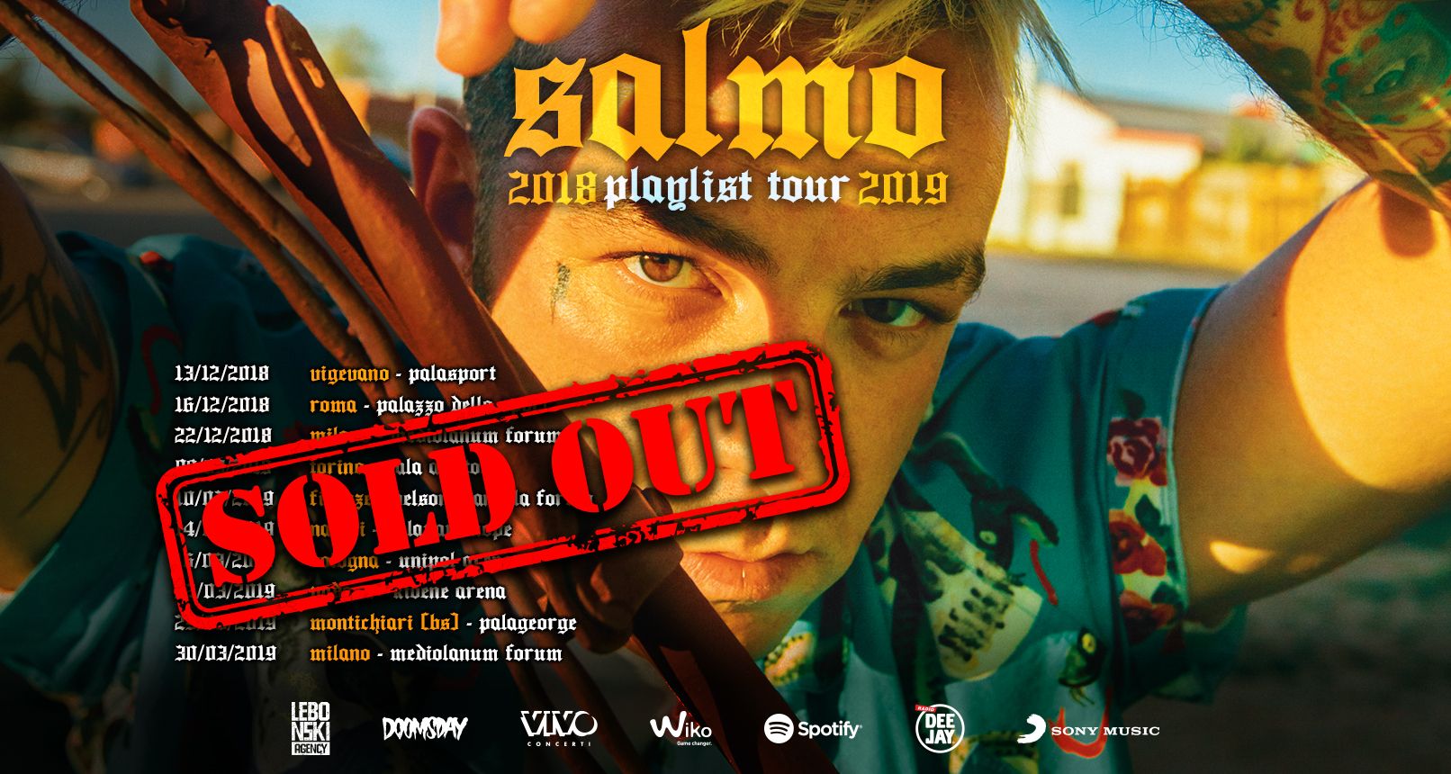 Dopo l’annuncio dei prossimi live estivi, SALMO continua a collezionare grandi risultati e registra il sold out completo di tutte le date del prossimo “PLAYLIST TOUR 2019”, la sua prima tournée nei palazzetti italiani, in partenza sabato 9 marzo dal Pala Alpitour di Torino.