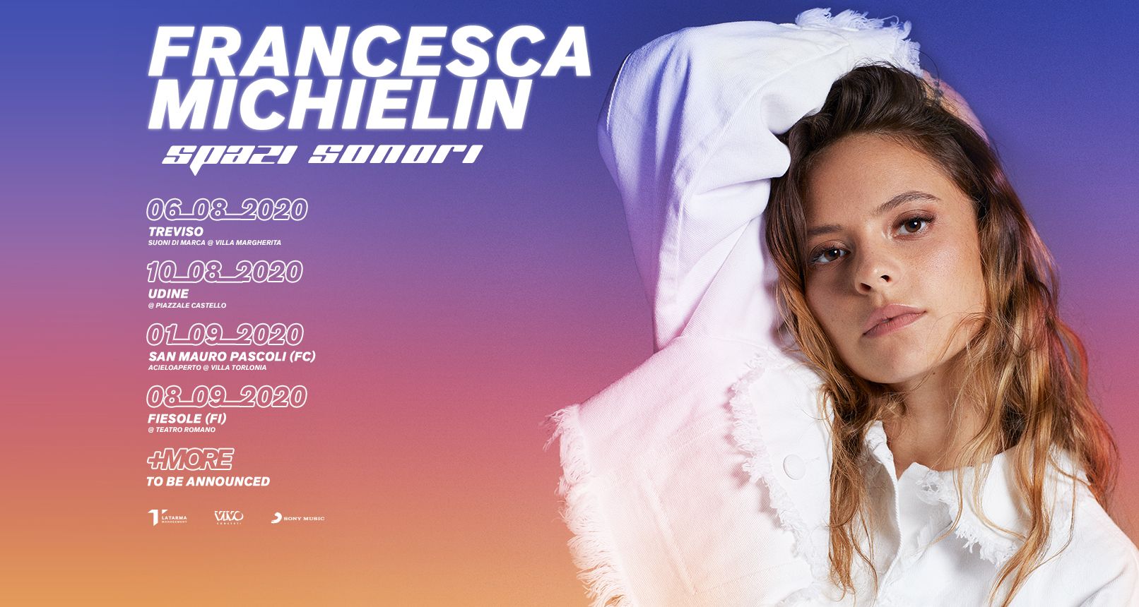 La musica non si ferma. Francesca Michielin lo ripete in ogni occasione fin dall’inizio di questi tempi difficili e lo ribadisce anche all’inizio di questa estate annunciando “Spazi Sonori”, una serie di appuntamenti esclusivi che la vedranno solo per i prossimi mesi sui palchi allestiti, in piena sicurezza e nel rispetto delle disposizioni governative, in alcune tra le più particolari location del nostro Paese. La cantautrice sarà, infatti, il 6 agosto a Treviso, nel Parco di Villa Marghera, il 10 agosto a Udine in Piazzale Castello, il 1 settembre sarà la volta di Villa Torlonia a San Mauro Pascoli (FC) e l’8 settembre, ad ospitare questo set esclusivo, sarà l’antichissimo Teatro Romano di Fiesole (FI).