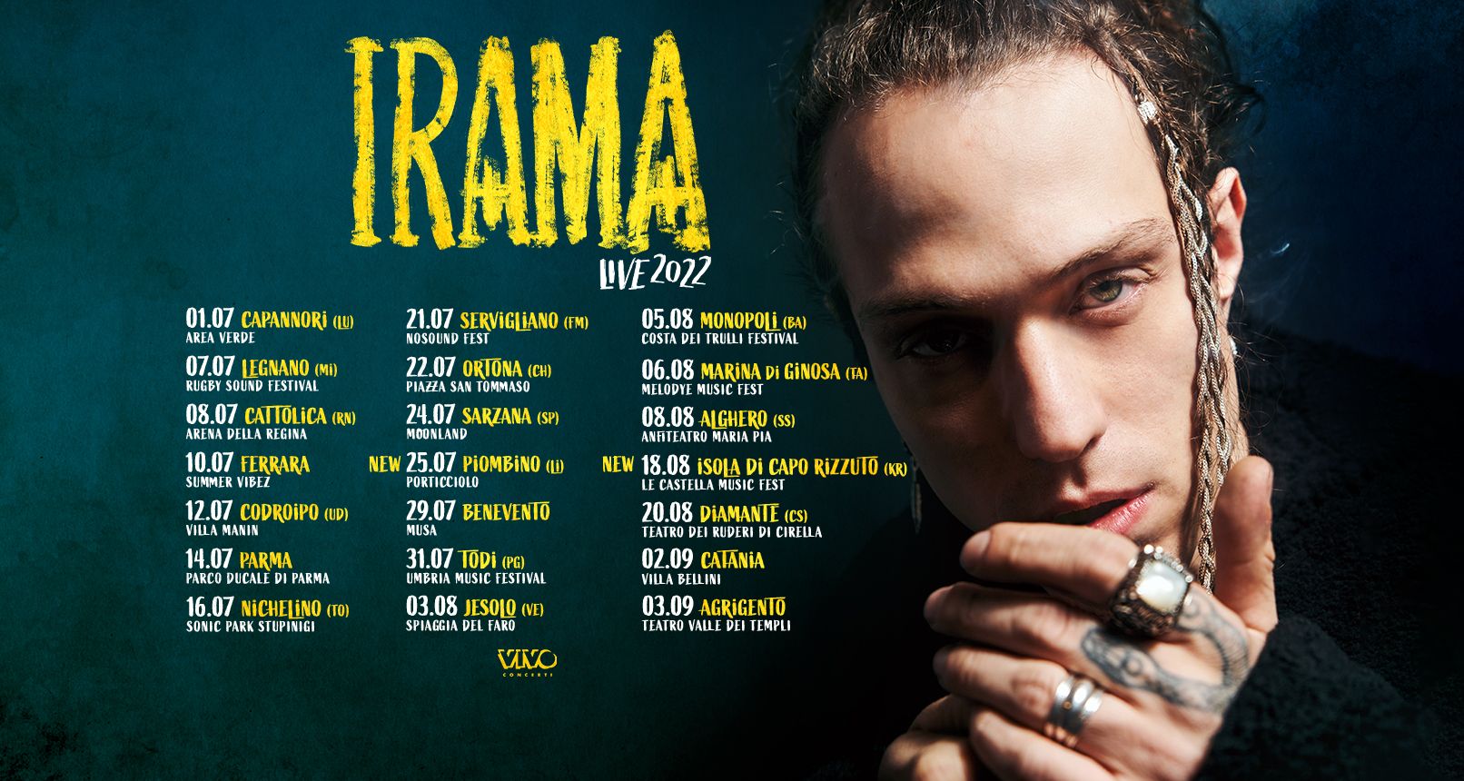 IRAMA, dopo il successo registrato nei palazzetti di tutta Italia, annuncia due nuove date estive dell’atteso LIVE 2022.