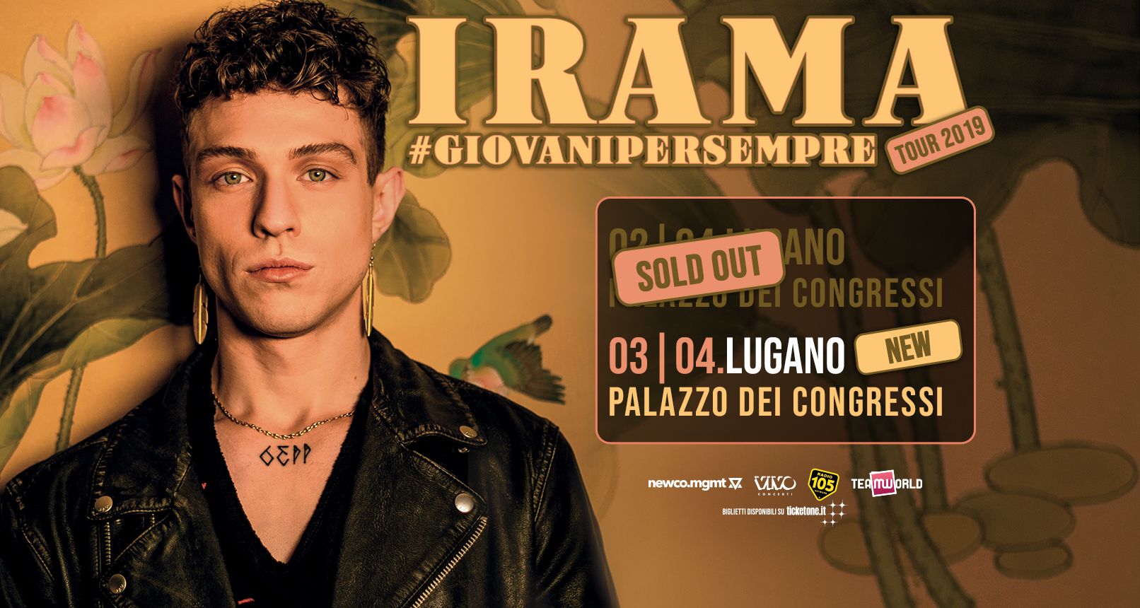 Continua senza sosta il successo di IRAMA, il giovane cantautore che, dopo il sold out dell’incredibile live al Mediolanum Forum di Milano, registra il tutto esaurito anche per la data di martedì 2 aprile 2019 a Lugano, presso il Palazzo dei Congressi. A grande richiesta, nella città svizzera si raddoppia con il concerto di mercoledì 3 aprile, sempre nella stessa venue.