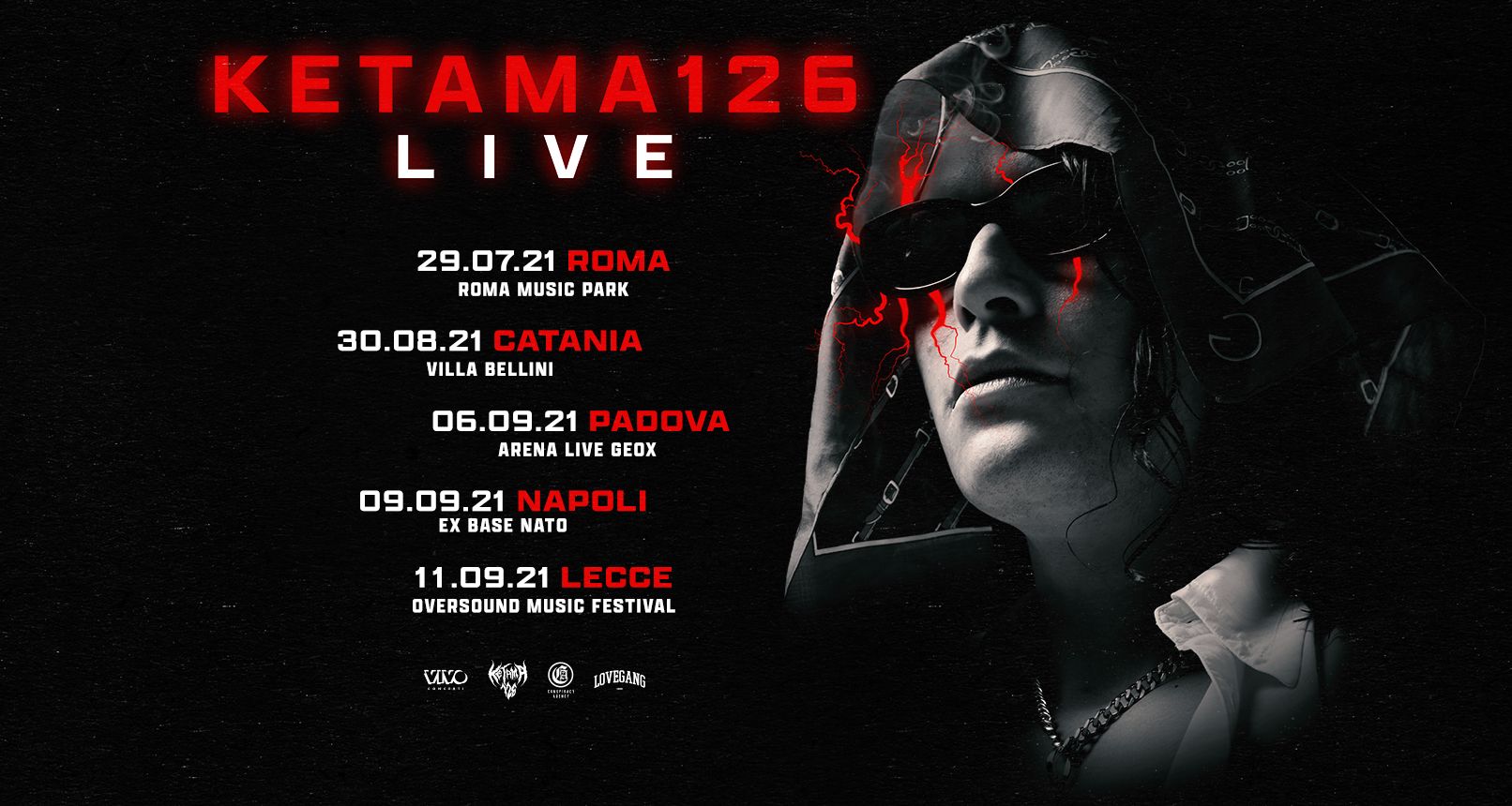 Ketama126 aggiunge nuove date al tour estivo che lo porterà in tutta Italia. Le date annunciate oggi, prodotte e distribuite da Vivo Concerti, seguiranno quella del Roma Music Park di giovedì 29 luglio.