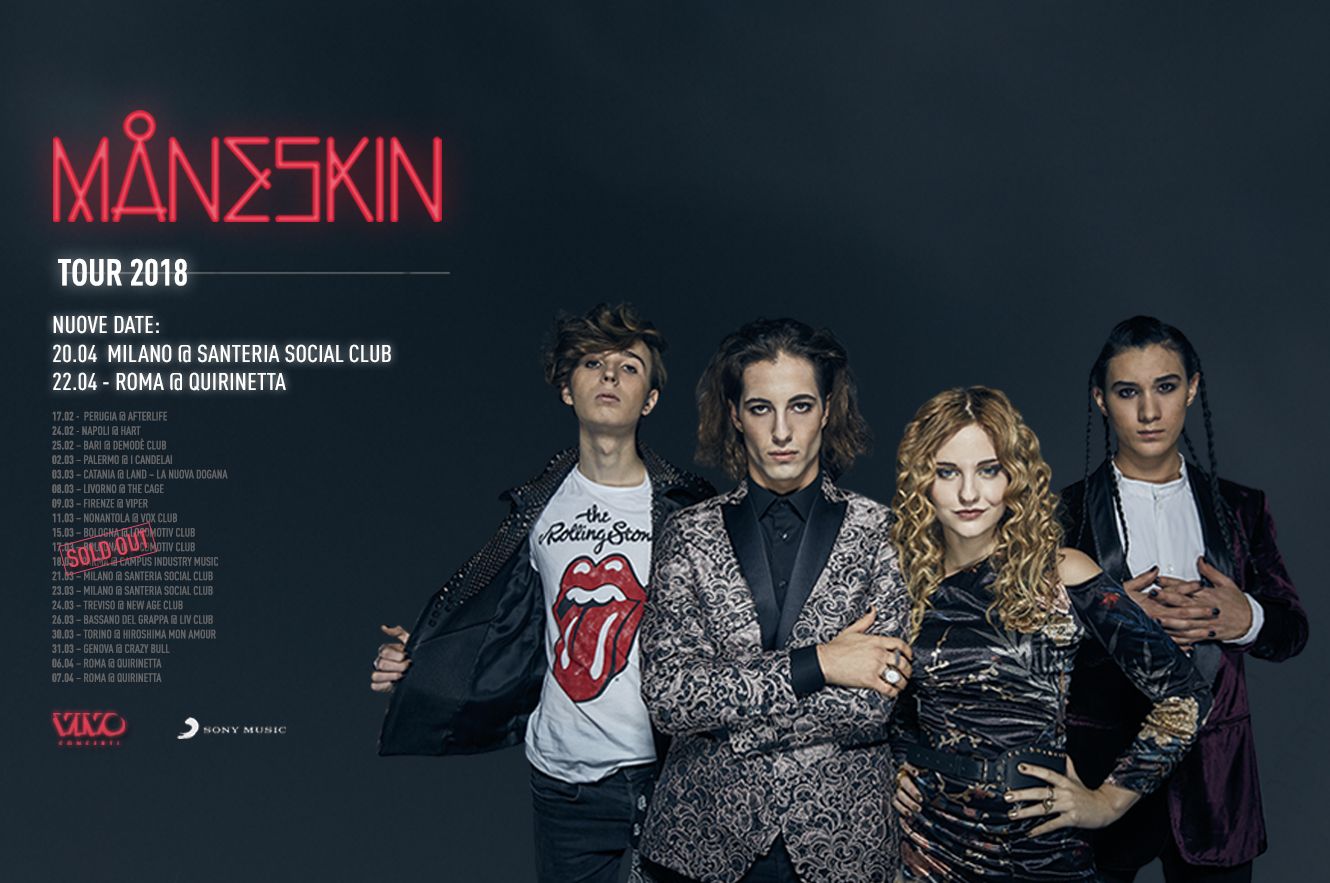 Irriverenti, eccentrici e giovanissimi i Måneskin arrivano sui palchi delle principali città italiane dopo il grande successo a X Factor, con un tour che non mancherà di stupire il pubblico e con un sound riconoscibile, potente e uno stile unico.