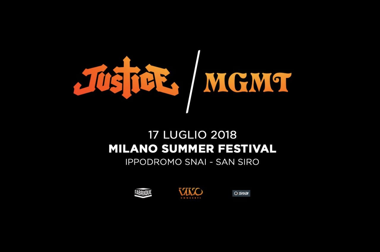 Una notte d’estate all’insegna della musica elettronica JUSTICE e MGMT, per la prima volta insieme in concerto al Milano Summer Festival all’Ippodromo Snai San Siro di Milano il 17 luglio.