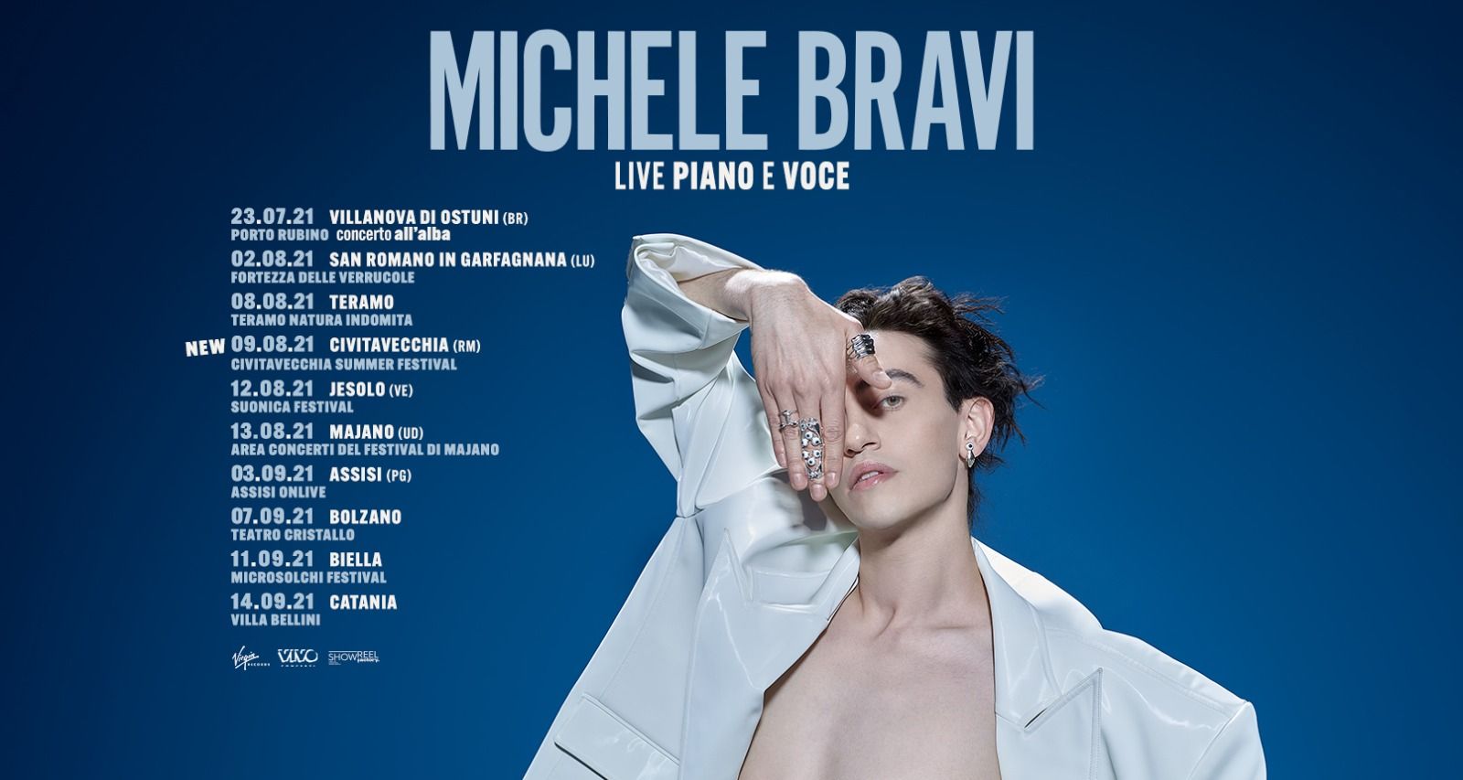 Giovedì 28 luglio 2021. Si aggiunge al tour estivo di Michele Bravi, cantautore che da poco ha pubblicato il singolo “Falene” insieme all’artista internazionale multiplatino Sophie and The Giants, la data del 9 agosto a Civitavecchia all’interno del Civitavecchia Summer Festival.