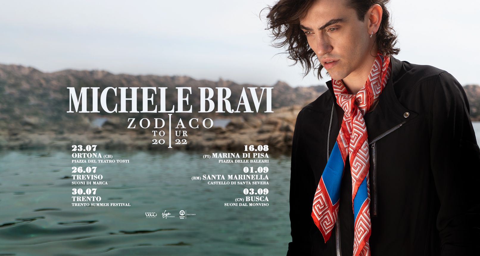 Michele Bravi annuncia le date della tournée estiva “Zodiaco Tour” che prende il nome dall’ultimo singolo del cantautore, “Zodiaco”, disponibile su tutte le piattaforme digitali e in radio.