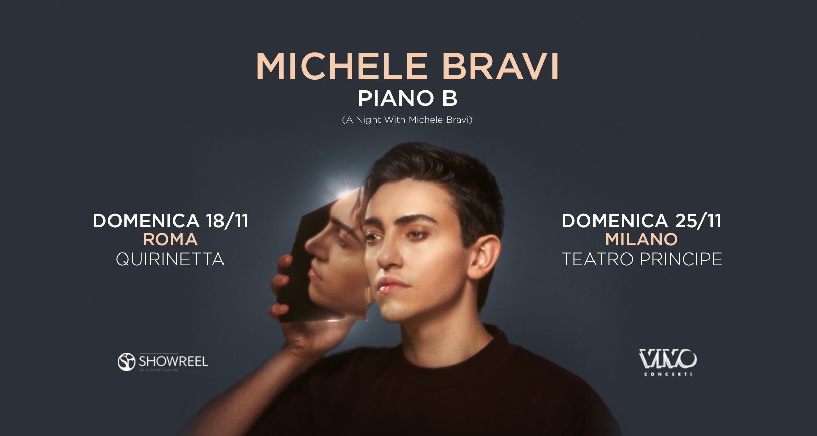 Dopo il grande successo di pubblico dell’autunno 2017 durante “Anime di Carta Tour – Nuove Pagine”, la sua prima tournée, organizzata da Vivo Concerti, Michele Bravi torna con il tour “Piano B (a night with Michele Bravi)” in due date esclusive dal vivo, domenica 18 novembre 2018 al Quirinetta di Roma e domenica 25 novembre 2018 a Milano, al Teatro Principe. L’artista descrive così queste due date evento: “#PIANOb come quando eravamo così impegnati ad essere infallibili che ci siamo dimenticati della luce che si può nascondere dietro il nostro riflesso.”