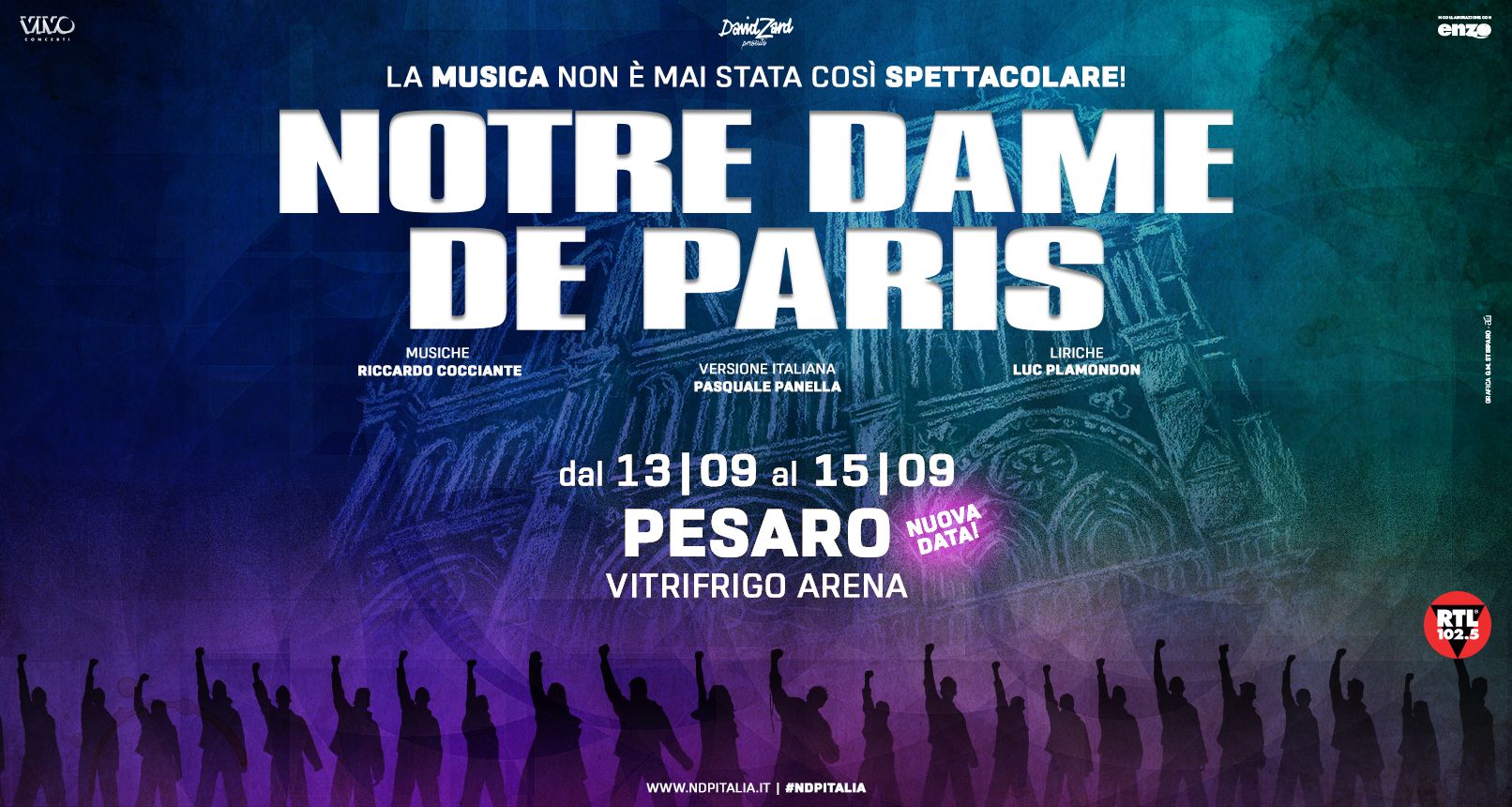Dopo aver appassionato più di 4 milioni di spettatori solo in Italia, “Notre Dame de Paris”, uno tra gli spettacoli teatrali più apprezzati al mondo, tratto dall’omonimo romanzo di Victor Hugo, torna a far sognare con nuova imperdibile tappa il 15 settembre alla Vitrifrigo Arena di Pesaro, che si affianca alle date già annunciate.