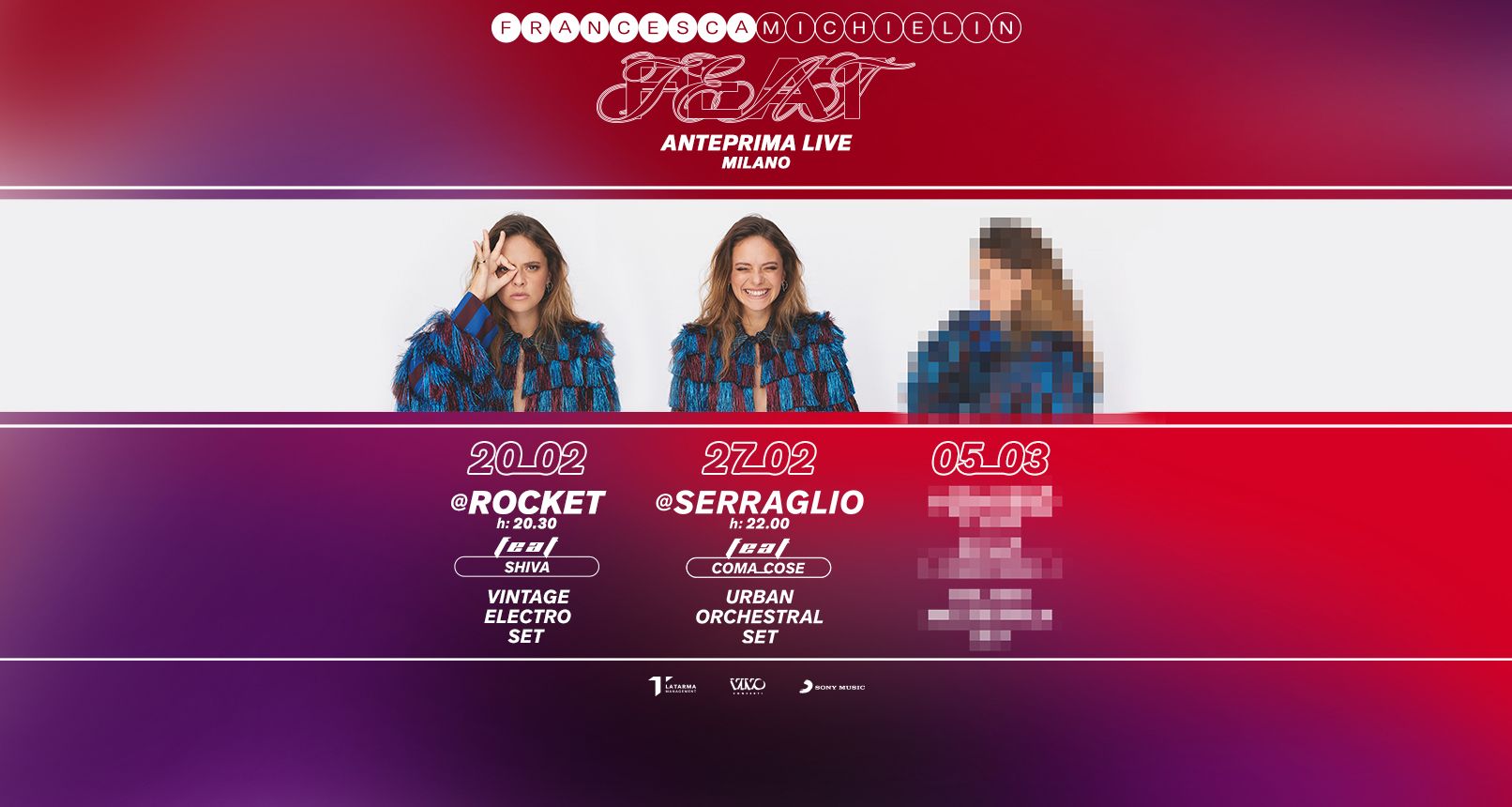 Seguirà poi l’ultimo di questi appuntamenti unici, sempre a Milano, giovedì 5 marzo. Location, sonorità del set di Francesca e i protagonisti del feat saranno svelati anche questa volta sui canali social dell’artista.