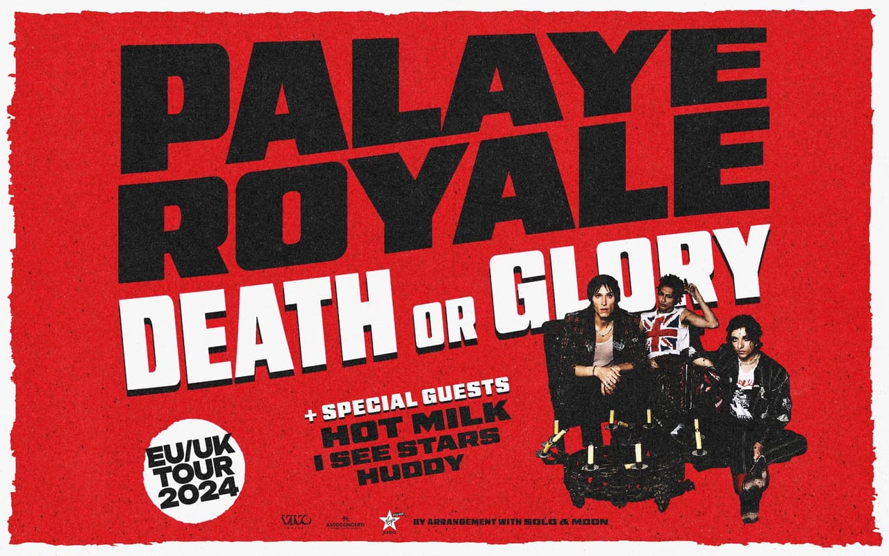 I Palaye Royale sono pronti ad arrivare in Italia con il loro EU/UK Tour 2024; l’elettrizzante trio di Los Angeles suonerà il nuovo album Death or Glory - fuori il 30 agosto su Sumerian Records via Virgin Music Group - in una data unica, che si terrà il 15 novembre 2024 all’Alcatraz. Ospiti speciali dello show saranno gli Hot Milk, gli I See Stars e Huddy.