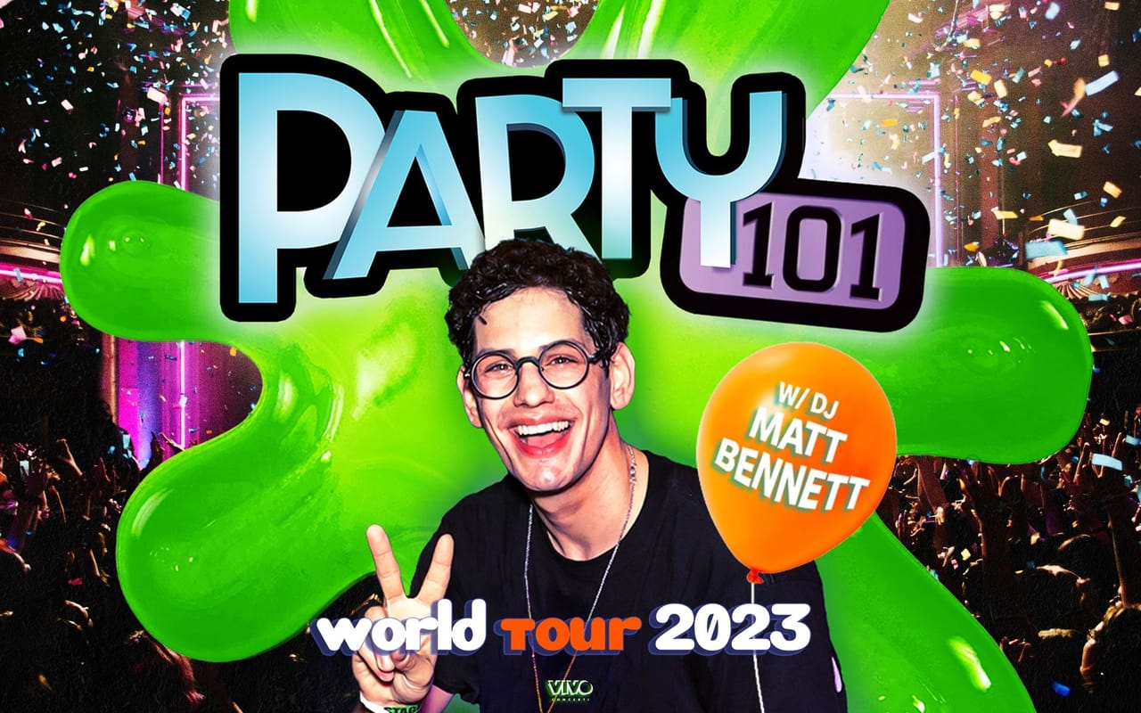 Party101 ha preso vita nel 2022 grazie alla mente della star di Nickelodeon e dj Matt Bennett. Attore, cantante e sceneggiatore statunitense, ha mosso i suoi primi passi proprio su Nickelodeon, interpretando il ruolo di Robbie Shapiro nella serie TV Victorious dove ha collaborato con le teen idol come Victoria Justice e Ariana Grande. Matt ha portato gli show di Party101 in oltre 30 città, facendo ballare decine di migliaia di spettatori dagli Stati Uniti all'Inghilterra. Sulle note delle principali colonne sonore di serie e film Disney e Nickelodeon, che hanno fatto la storia della generazione Z, Party101 ha registrato il tutto esaurito anche in tutto il Nord America e in Europa.