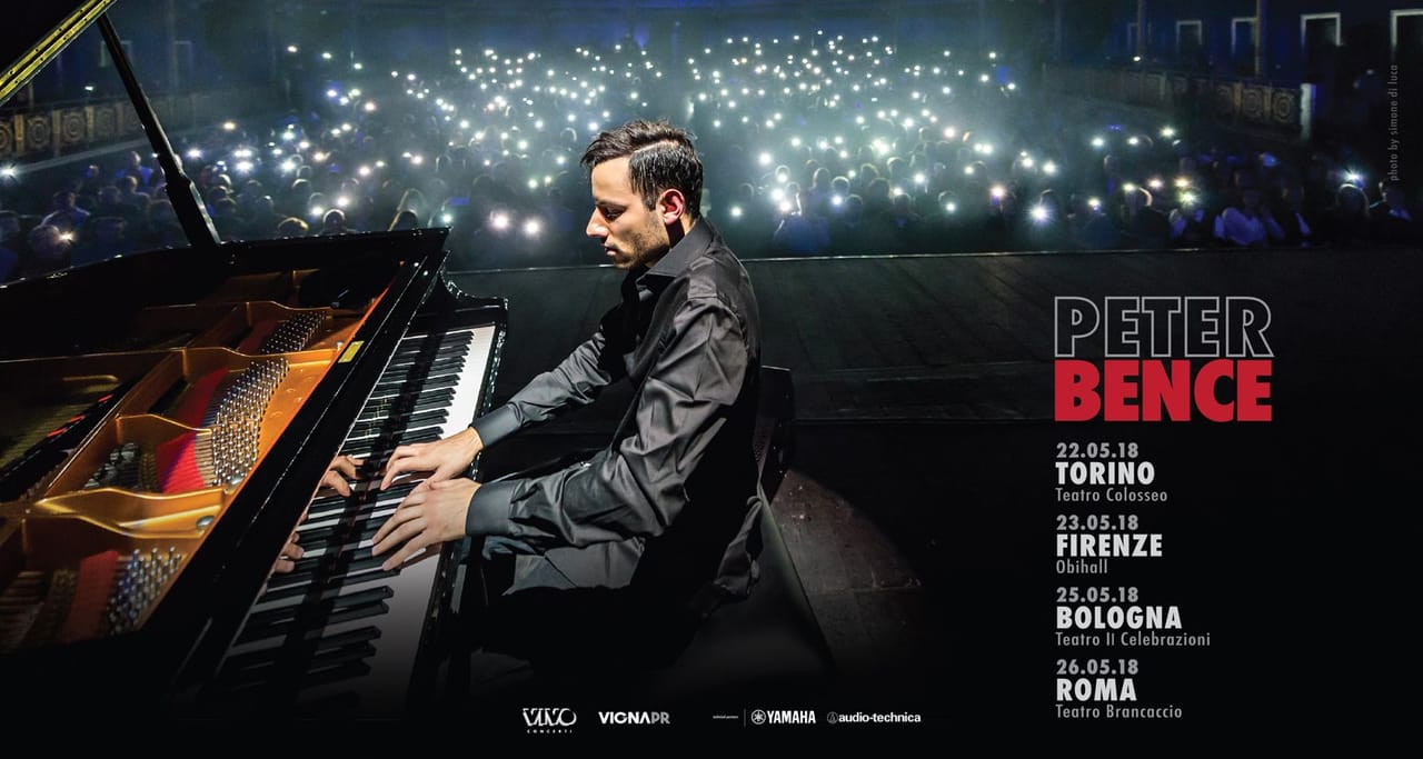 Dopo il successo dello scorso dicembre al Teatro Dal Verme a Milano e al Politeama Rossetti a Trieste, PETER BENCE, il nuovo fenomeno mondiale del crossover tra classica e pop, annuncia 4 nuovi concerti nei principali teatri italiani: il 22 maggio a Torino al Teatro Colosseo, il 23 maggio a Firenze all’Obihall, il 25 maggio a Bologna al Teatro II Celebrazioni e il 26 maggio a Roma al Teatro Brancaccio.