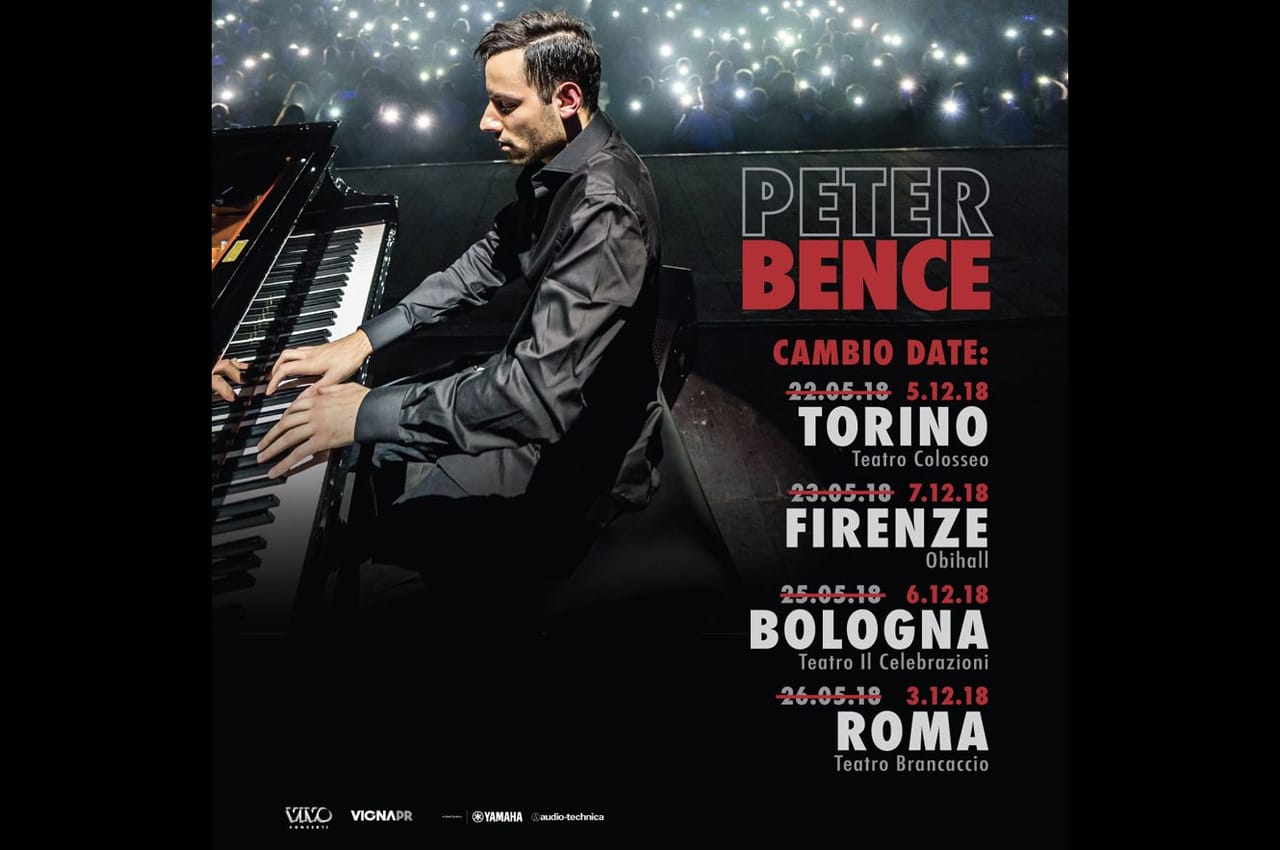 A causa di circostanze impreviste non dipendenti dalla volontà dell’Artista, siamo spiacenti di dover annunciare che i concerti di PETER BENCE in programma a maggio sono stati rinviati a dicembre 2018.