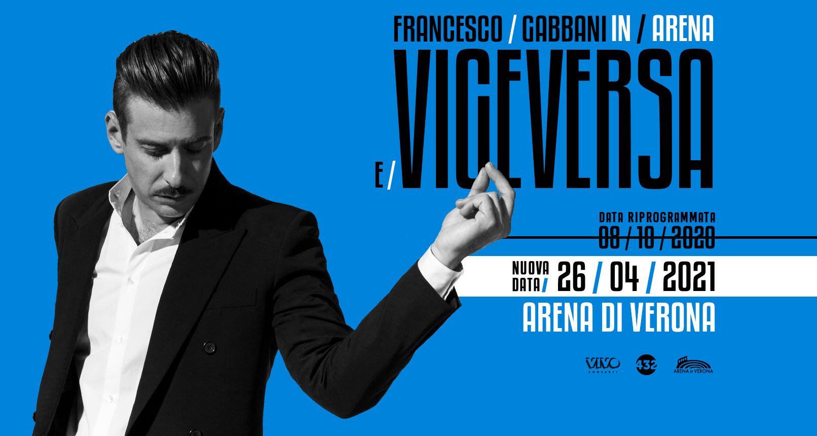Date le recenti disposizioni governative, che non lasciano prevedere con certezza l’evolversi della situazione degli spettacoli live e il regolare svolgimento di prove e allestimento, il concerto di Francesco Gabbani all'Arena di Verona previsto per l'8 ottobre 2020 è stato spostato al 26 aprile 2021.