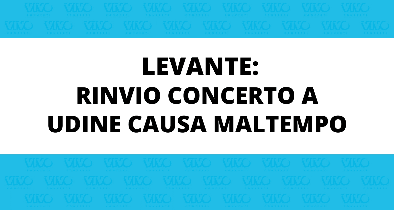 In accordo con le autorità locali e con gli organizzatori, a causa delle avverse condizioni meteorologiche che impediscono il regolare svolgimento del concerto, Vivo Concerti comunica che il live di Levante “Dall'alba al tramonto” previsto per questa sera a Udine, è rimandato al