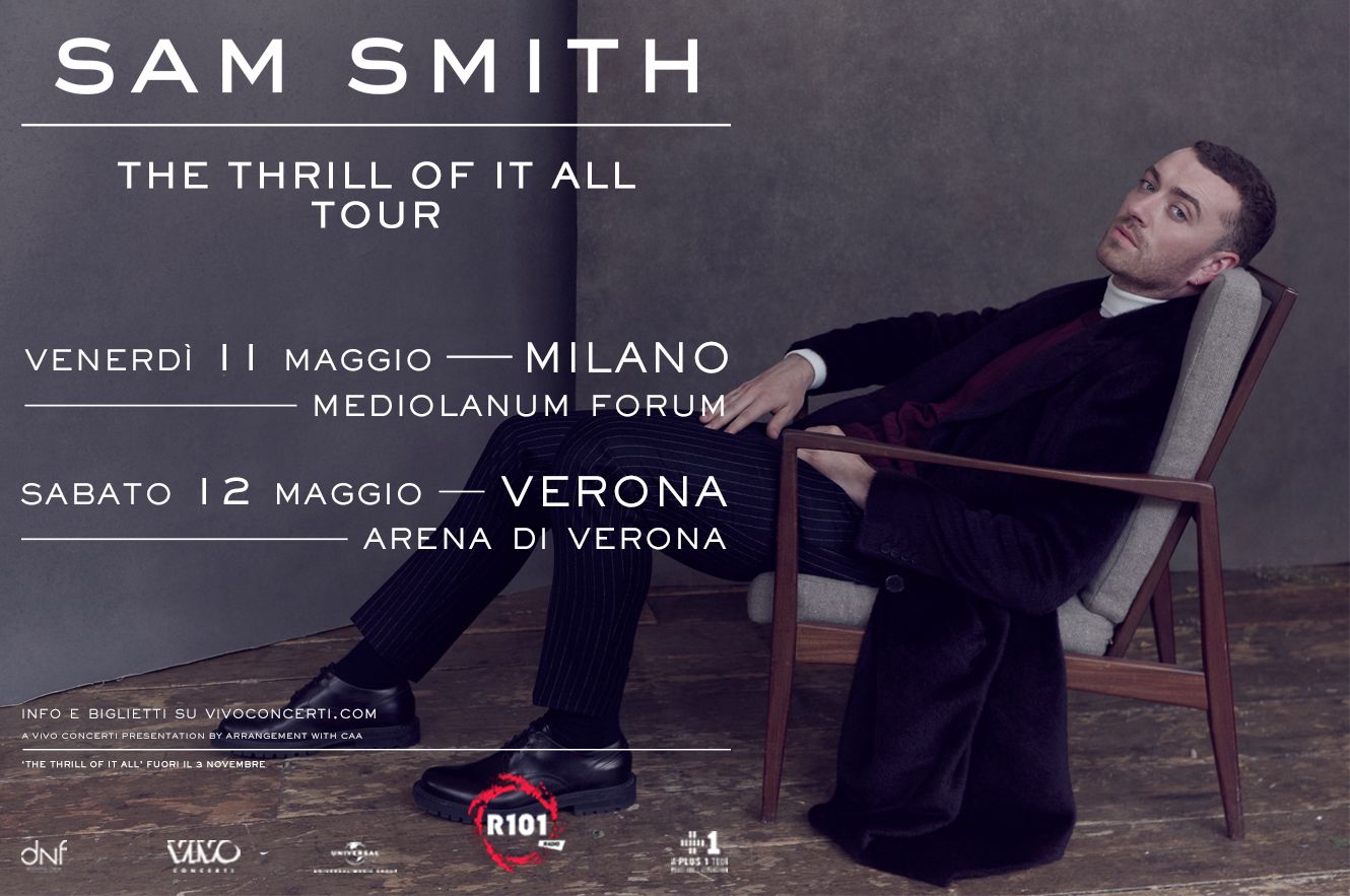 SAM SMITH sbarca in Italia con due show esclusivi! Saranno i palchi di Milano e Verona ad ospitarlo, rispettivamente venerdì 11 maggio ad Assago Forum e sabato 12 maggio all’Arena.