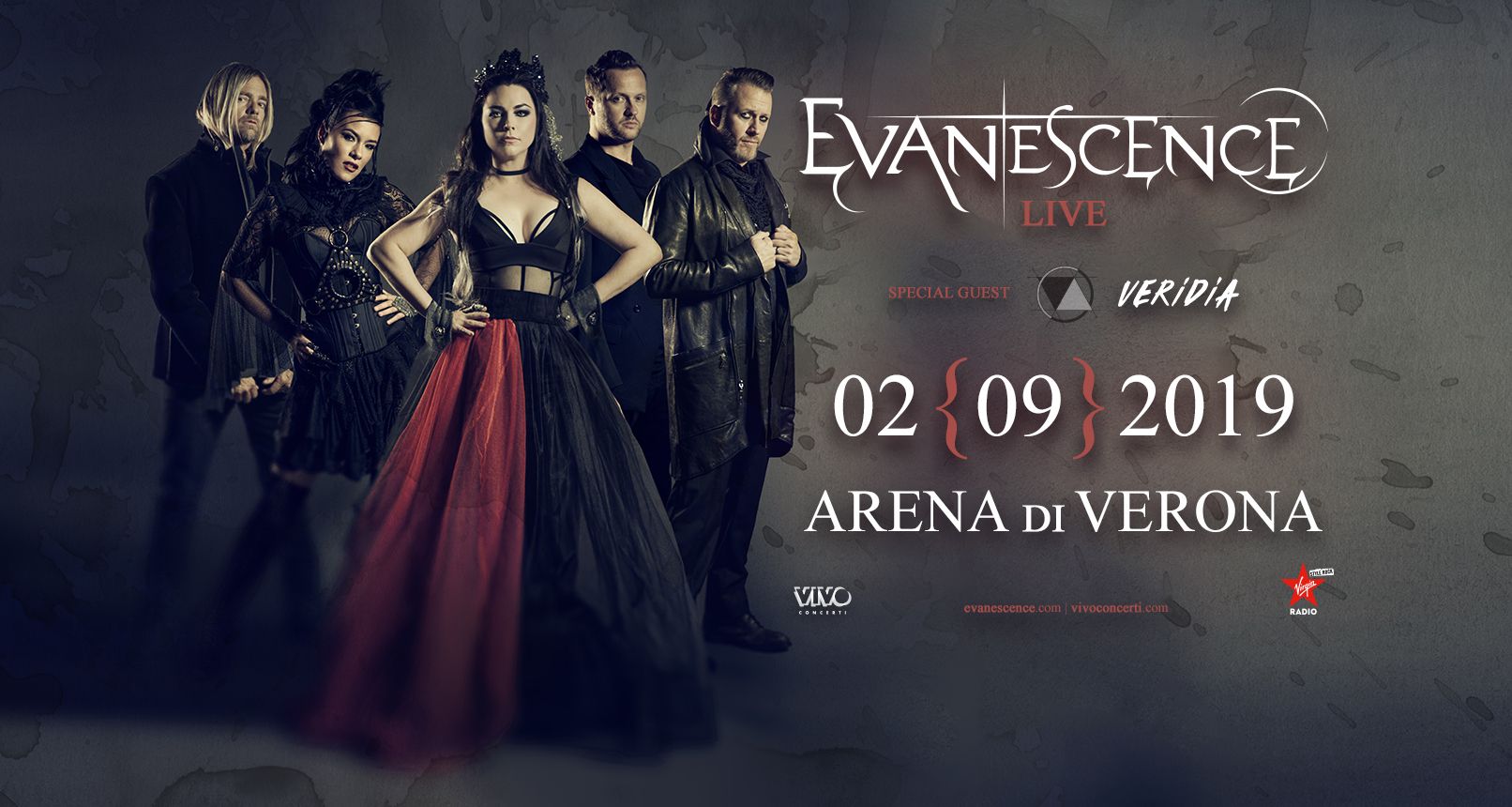 Dopo l’indimenticabile sold out al Teatro degli Arcimboldi di Milanonel marzo 2018, tornano in Italia gli EVANESCENCE, band tra le più rappresentative del panorama rock internazionale, pronta a stupire ancora una volta il pubblico italiano con una speciale data evento, l’unica nel nostro Paese, il 2 settembre2019nella location più suggestiva ed emozionante di sempre: L’ARENA DI VERONA!