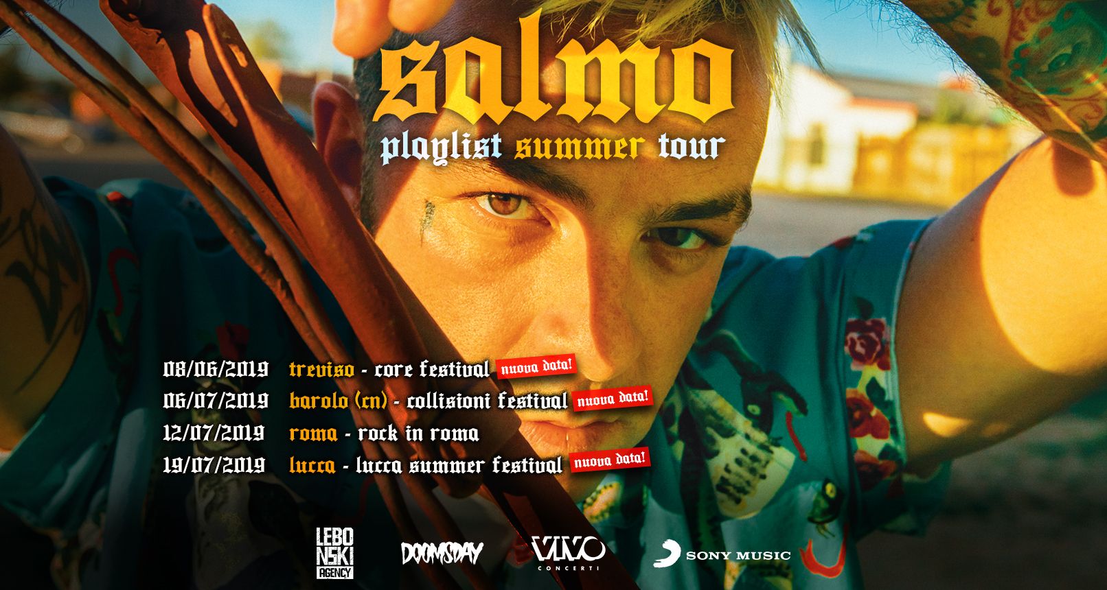In attesa di calcare i palchi dei principali palazzetti italiani in primavera, SALMO annuncia oggi “PLAYLIST SUMMER TOUR”: al live di venerdì 12 luglio 2019 a Rock In Roma all’Ippodromo delle Capannelle si aggiungono tre nuovi e imperdibili appuntamenti. Si parte sabato 8 giugno da Treviso @ Home presenta Core Festival, per passare poi da Barolo al Collisioni Festival sabato 6 luglio e finire venerdì 19 luglio al Lucca Summer Festival.