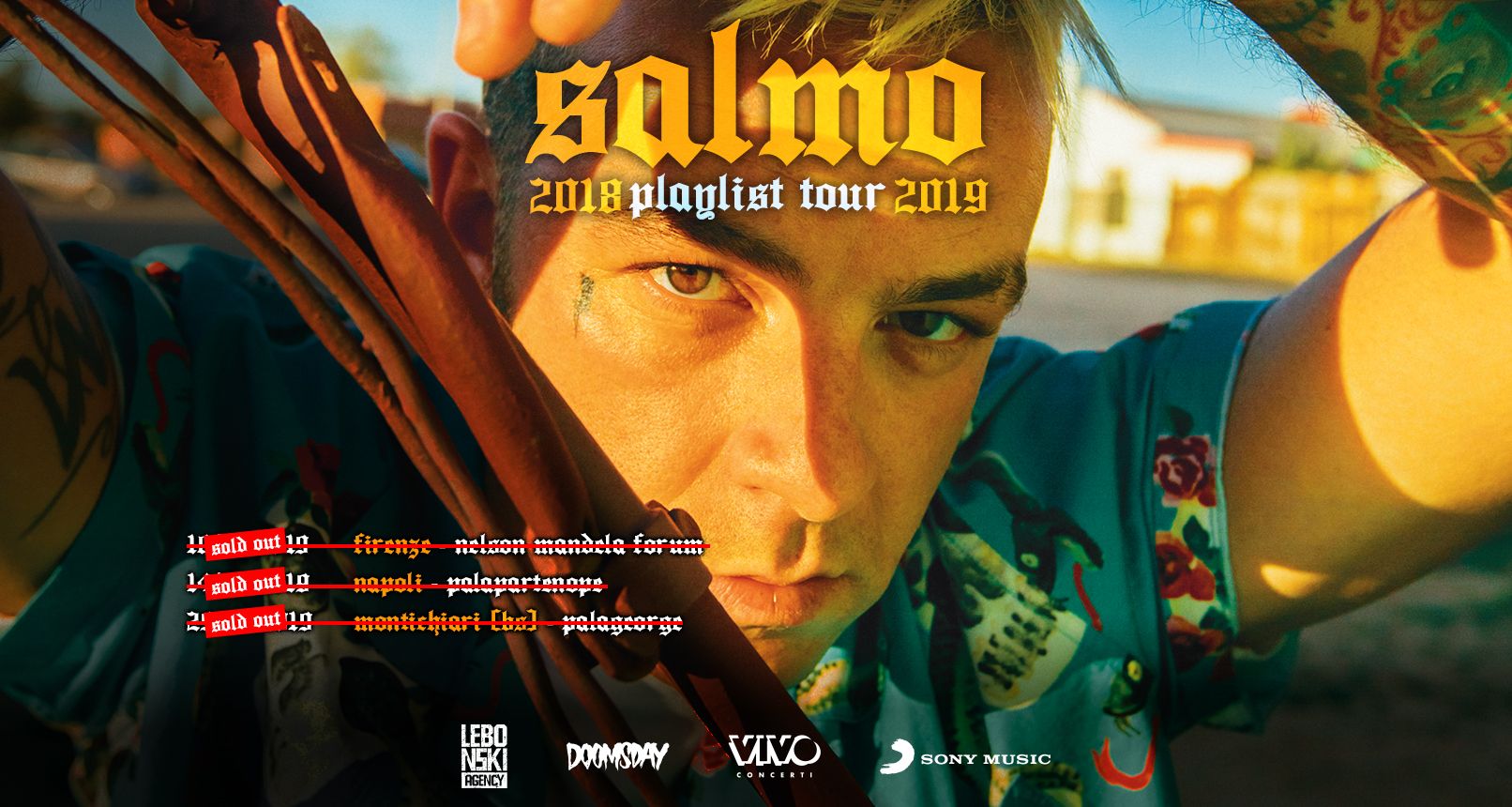 Dopo l’annuncio dei prossimi live estivi, SALMO continua a collezionare grandi risultati e ottiene nuovi sold outper il “PLAYLIST TOUR 2019”, la sua prima tournée nei palazzetti italiani che, oltre al Mediolanum Forum di Milano, registra il tutto esaurito anche a Firenze (10 marzo 2019, Nelson Mandela Forum), Napoli (14 marzo 2019, Palapartenope) e Montichiari (29 marzo 2019, Palageorge).
