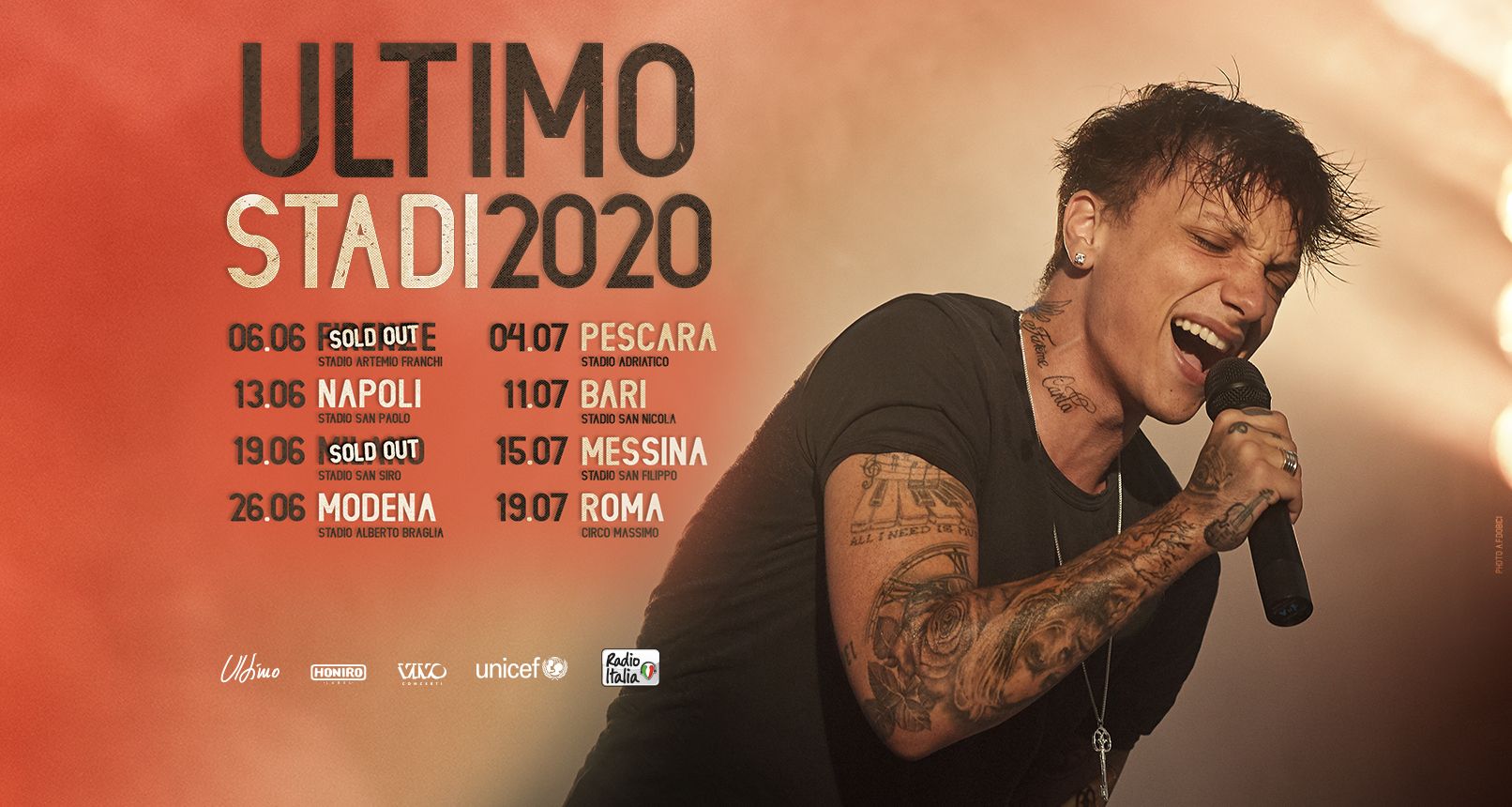 Risultato eccezionale per il TOUR NEGLI STADI2020 di Ultimo: a 9 mesi dalla partenza del tour le date di Firenze, sabato 6 giugno 2020 allo Stadio Artemio Franchi, e Milano, venerdì 19 giugno 2020 a San Siro, registrano il sold out.
