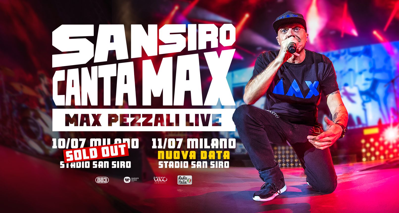 Risultato straordinario per “SAN SIRO CANTA MAX”, il concerto evento di MAX PEZZALI allo Stadio San Siro di Milano che registra il tutto esaurito in meno di tre settimane dall’apertura delle vendite. A grande richiesta si aggiunge un nuovo e imperdibile appuntamento previsto per sabato 11 luglio 2020 sempre allo stadio San Siro.