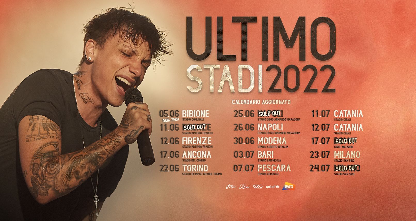 A soli 25 anni, Ultimo ha già collezionato 40 dischi di platino e 19 dischi d’oro con oltre 2.000.000 di copie vendute tra album e singoli. Dal 2019 è Goodwill Ambassador UNICEF e devolverà parte dell’incasso ricavato dalla vendita dei biglietti di ULTIMO STADI 2022 ai progetti di lotta alla malnutrizione e a sostegno di vaccinazioni, impianti idrici e servizi igienico sanitari in Mali, dove nel 2020 è stato per la sua prima missione sul campo.