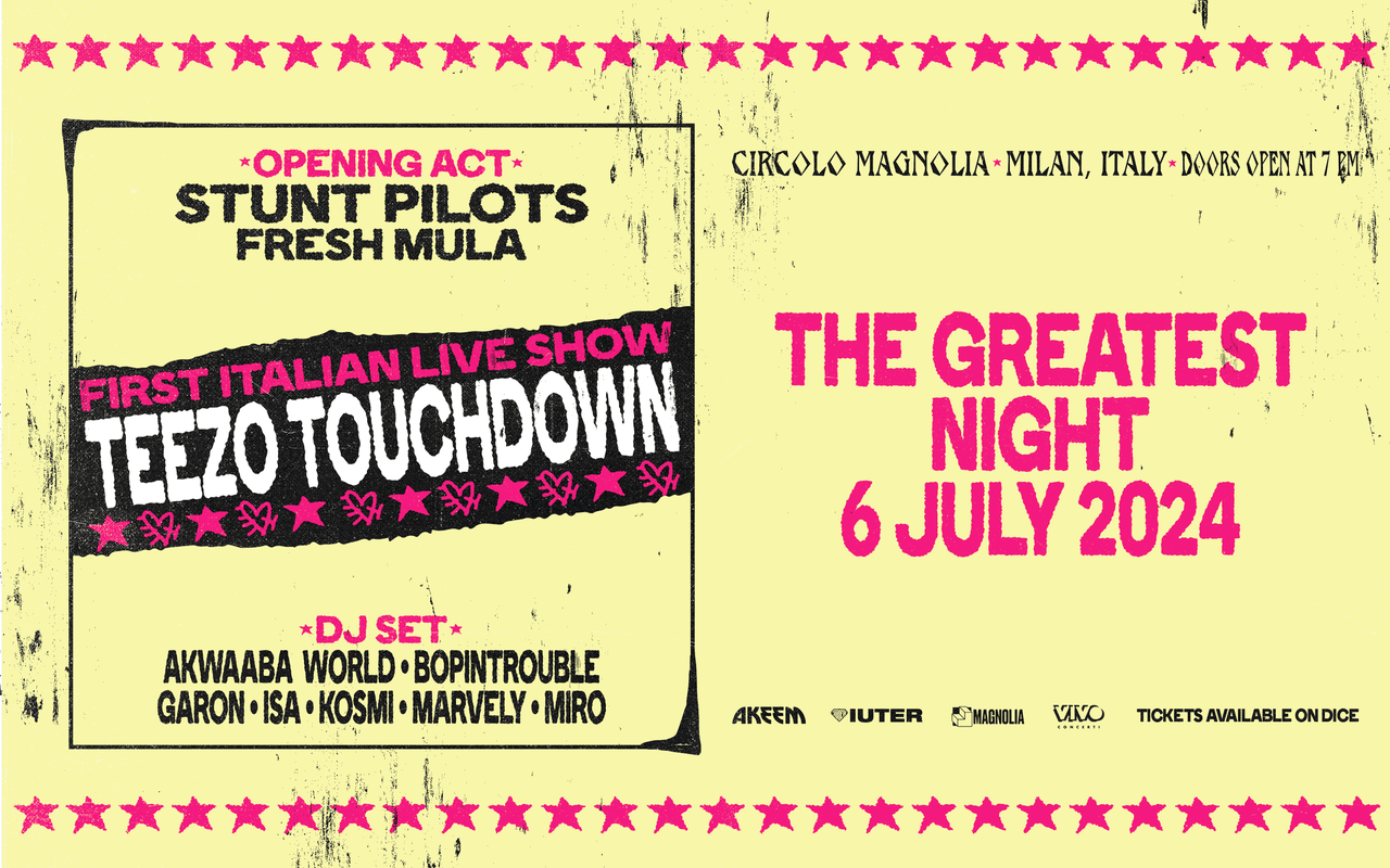 Teezo Touchdown, il rapper crossover che vanta collaborazioni con i più grandi nomi dell'hip-hop mondiale, arriva per la prima volta in Italia. La data sarà parte della serata Akeem - The Greatest Night, che si terrà sabato 6 luglio 2024 al Circolo Magnolia di Milano.