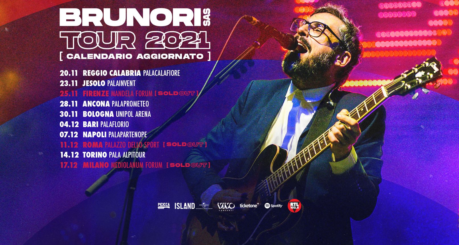 Brunori SAS - tour nei palazzetti spostato al 2021