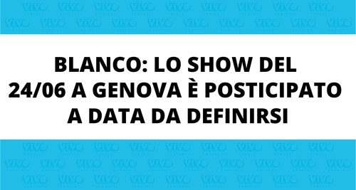 19/07/2022Blanco - il concerto previsto per il 24 giugno a Genova, verrà recuperato il 12 e il 13 settembre all'Arena del Mare