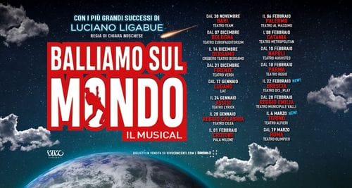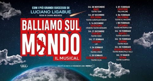 BALLIAMO SUL MONDO conquista tutta Italia! Il musical con i più grandi successi di Luciano Ligabue e testo originale e regia di Chiara Noschese, dopo aver raccolto grandi consensi di pubblico e critica a Milano, dal 30 novembre sarà in scena nei teatri di tutta Italia! A grande richiesta raddoppia la data di Brescia e si aggiungono due nuove date a Torino.