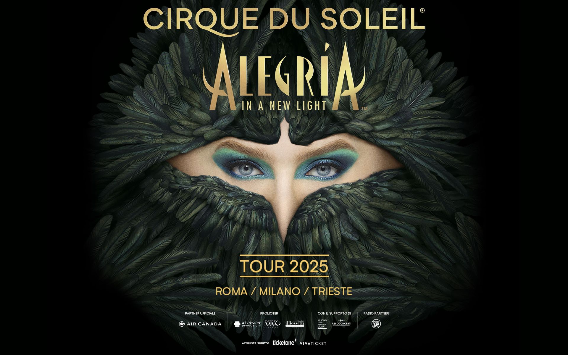 Cirque du Soleil arriva in Italia nel 2025 con Alegría – In A New Light, la straordinaria rivisitazione creativa del celeberrimo spettacolo del 1994 acclamato a livello internazionale. Il pubblico è, dunque, invitato sotto il Grand Chapiteau a Roma presso Tor di Quinto (dall’1 marzo al 13 aprile 2025), a Milano (dal 25 aprile al 2 giugno 2025) e, per la prima volta assoluta, a Trieste (dal 13 giugno al 13 luglio 2025) per vivere la pura magia teatrale di un classico del Cirque du Soleil completamente ripensato. "Alegría ti lascerà ancora una volta senza fiato” Evening Standard (Londra) "Cirque du Soleil con 'Alegría' riesce a raggiungere l’obiettivo più difficile: superare l’originale” El Periódico (Spagna) Presentato per la prima volta nell'aprile 1994, Alegría (“gioia” in spagnolo) è uno degli spettacoli più iconici del Cirque du Soleil oltre che il più amato dai fan di tutto il mondo, un vero e proprio capolavoro che ha contribuito in maniera determinante a consacrare lo stile unico della compagnia a livello internazionale. In tournée dal 1994 al 2013, Alegría ha incantato oltre 14 milioni di spettatori in 255 città di 40 Paesi.